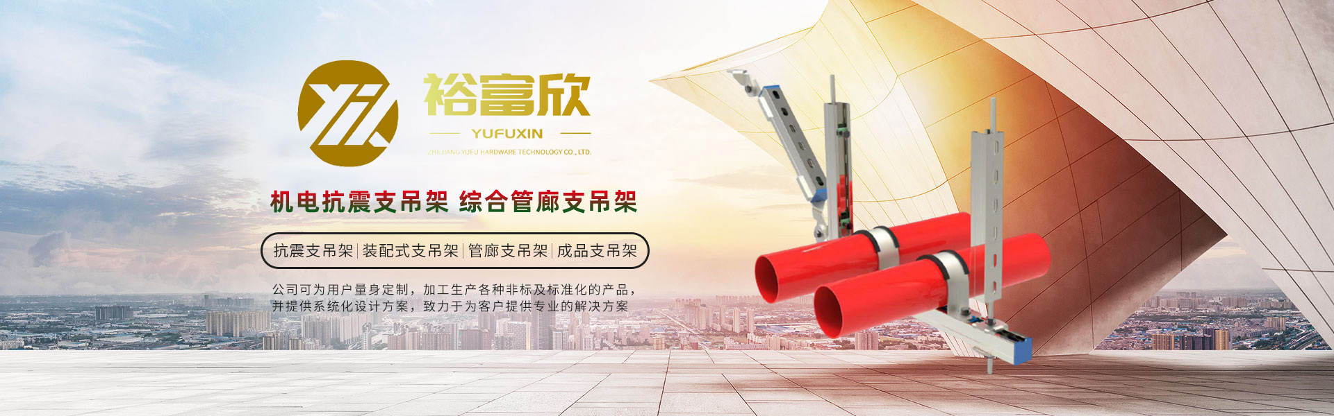浙江裕富五金科技有限公司位于美麗的杭州臨安青山湖畔,注冊資金5000萬人民幣。是一家集研發(fā)、設計、制造、銷售、安裝、技術服務于一體的,專業從事抗震支吊架、管廊支吊架、綜合承重支吊架等,多功能、多元化的現代新興科技企業。 公司技術力量雄厚、設備齊全、工藝先進、管理體系高效完善,在注重產品設計、選材、結構工藝等細節(jié)基礎上,嚴格按照GB/T37267-2018、GB/T9978.1-2008等國家標準進行生產和管理,立足本土并扎根施工現場,多次調研測試并持續(xù)改進,產品通過了國家建筑工程質量監(jiān)督檢驗中心的檢測,打造了“裕富欣”品牌。
